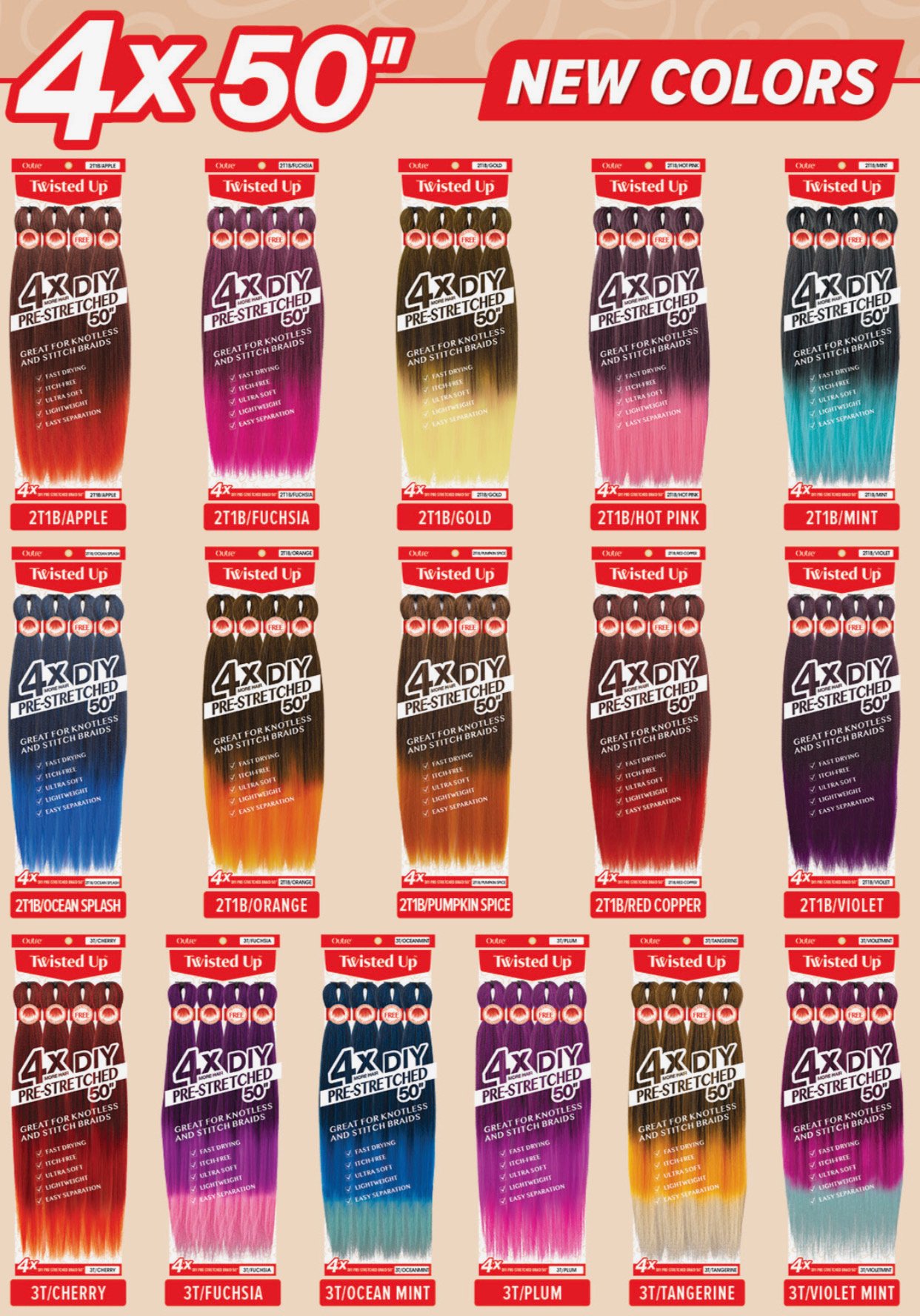 Soft synthetic braid hair, lightweight and versatile. Quick install, hot water set, fast drying, available in vibrant new colors.